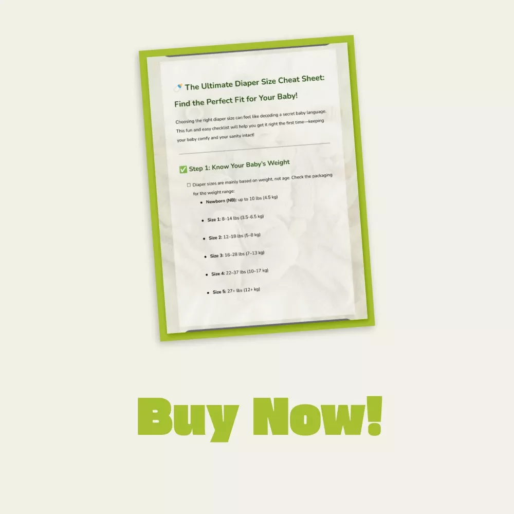 Say goodbye to diaper-size confusion and keep your baby comfortable from day one! Download The Ultimate Diaper Size Cheat Sheet: Find the Perfect Fit for Your Baby today and always know exactly what size diaper should my baby wear. Get your instant digital copy now and enjoy stress-free diapering!