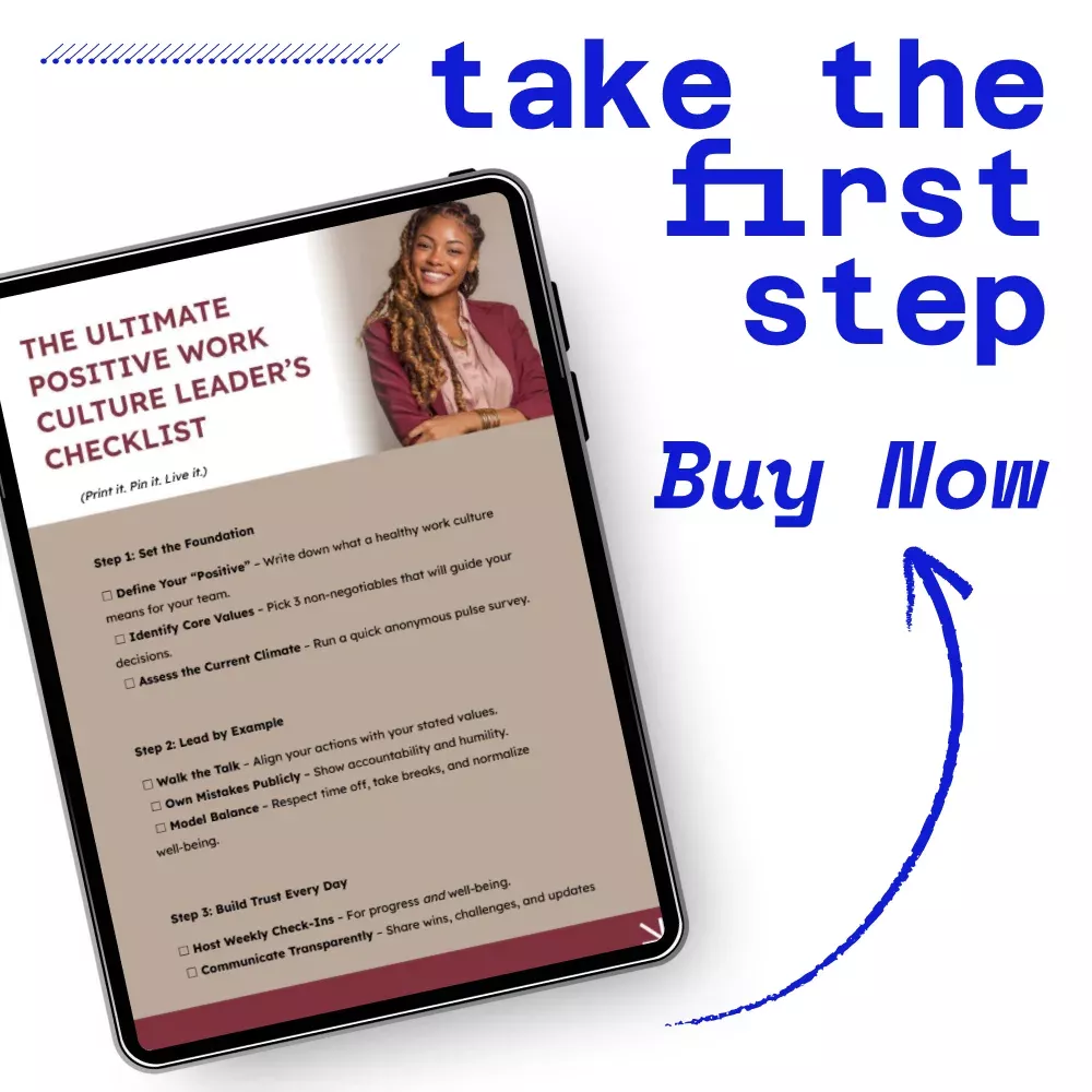Don’t wait to build the team environment you’ve always wanted. Download The Ultimate Positive Work Culture Leader’s Checklist now and start implementing actionable strategies that improve engagement, trust, and morale immediately. Create a workplace where everyone thrives—your team, your leadership, and your business will thank you!
