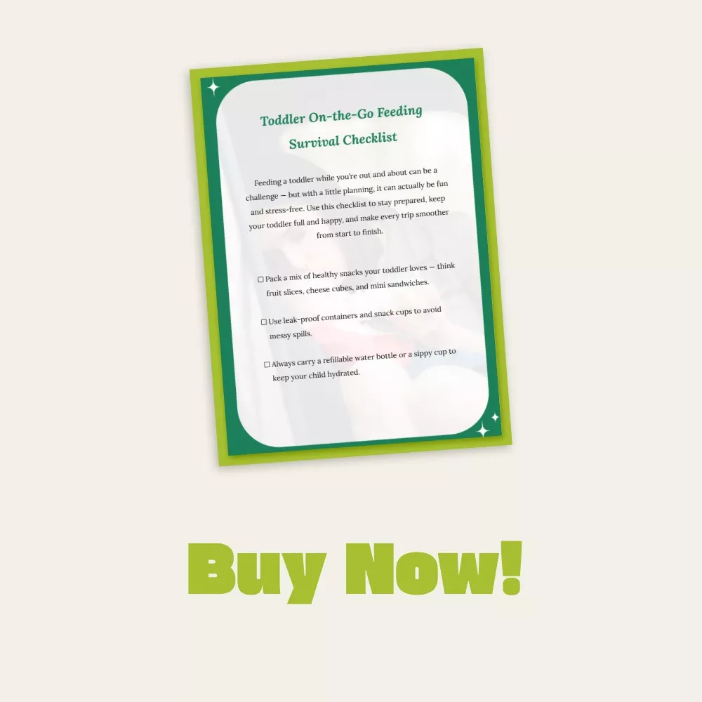 Say goodbye to snack-time chaos and hello to calm, confident travel days. Download your Toddler On-the-Go Feeding Survival Checklist now and discover exactly how to feed toddler on the go—without the mess, stress, or meltdowns!