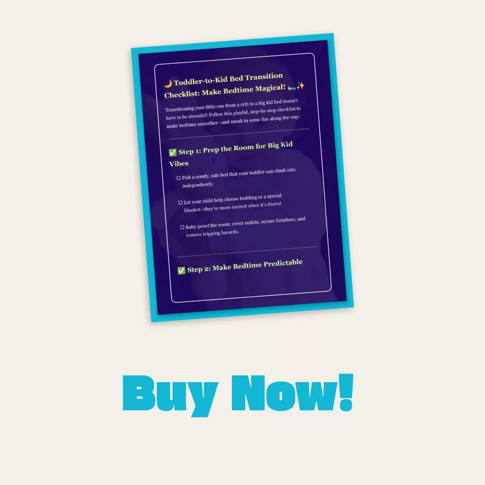 Make bedtime smoother—and even a little magical! Download the Toddler-to-Kid Bed Transition Checklist: Make Bedtime Magical! today and discover how to transition toddler to kid bed at night with confidence, comfort, and joy. Print it, check it off, and watch your little one shine as they grow into their next big adventure!