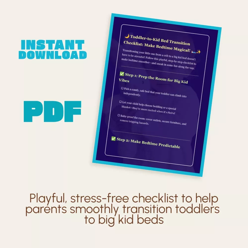 Ready to move your little one from a crib to their very own big kid bed? The Toddler-to-Kid Bed Transition Checklist: Make Bedtime Magical! is your ultimate digital companion for turning this big step into a fun and stress-free experience. Whether you’re wondering how to transition toddler to kid bed at night or simply need a clear plan to keep bedtime calm, this downloadable checklist walks you through every stage with practical, loving guidance.