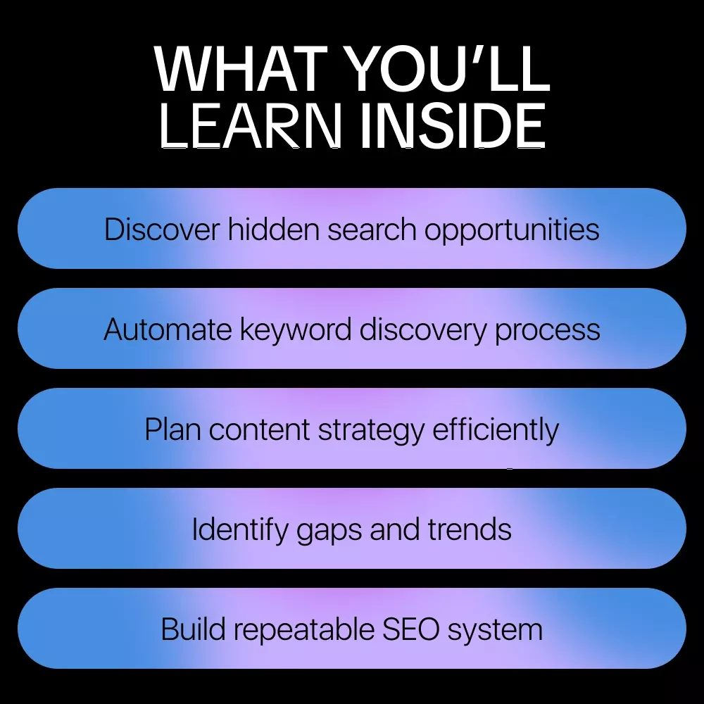 - Chapter 4: Turning Query Lists into Content Strategy – Map queries to pages, spot content gaps, and generate actionable SEO ideas.