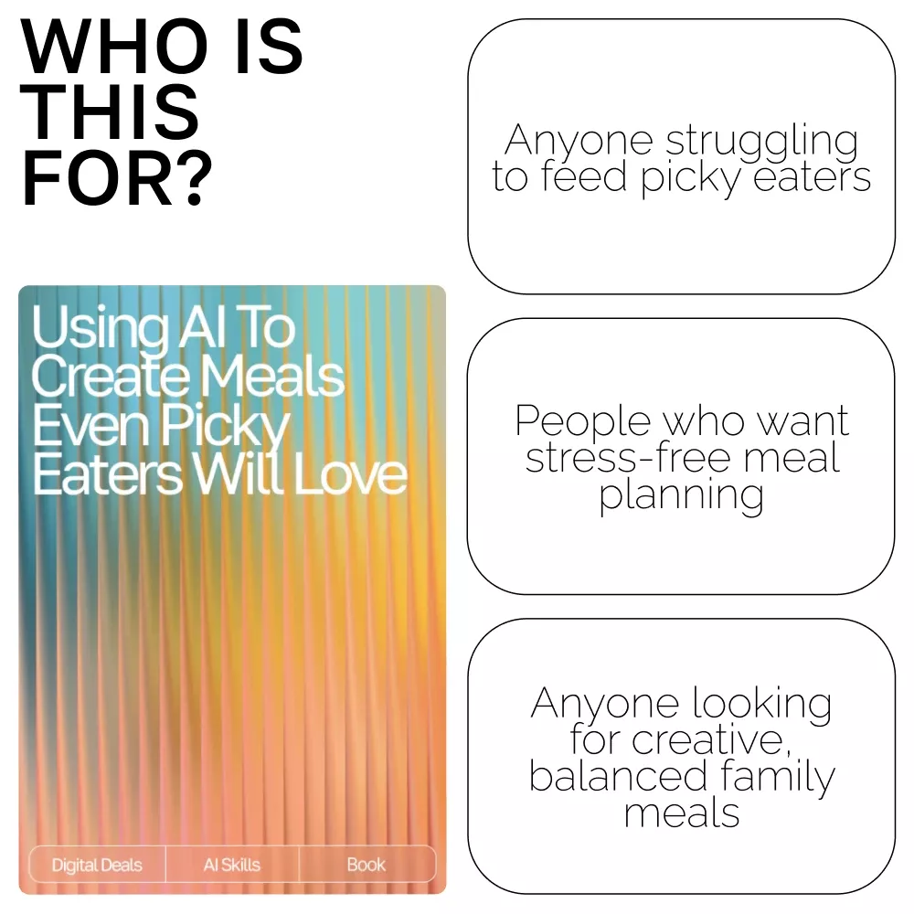 Don’t let picky eating stress you out any longer. Download Using AI to Create Meals Even Picky Eaters Will Love today and start creating balanced, fun, and delicious meals with AI. Make mealtime enjoyable, nutritious, and stress-free—your family will thank you!