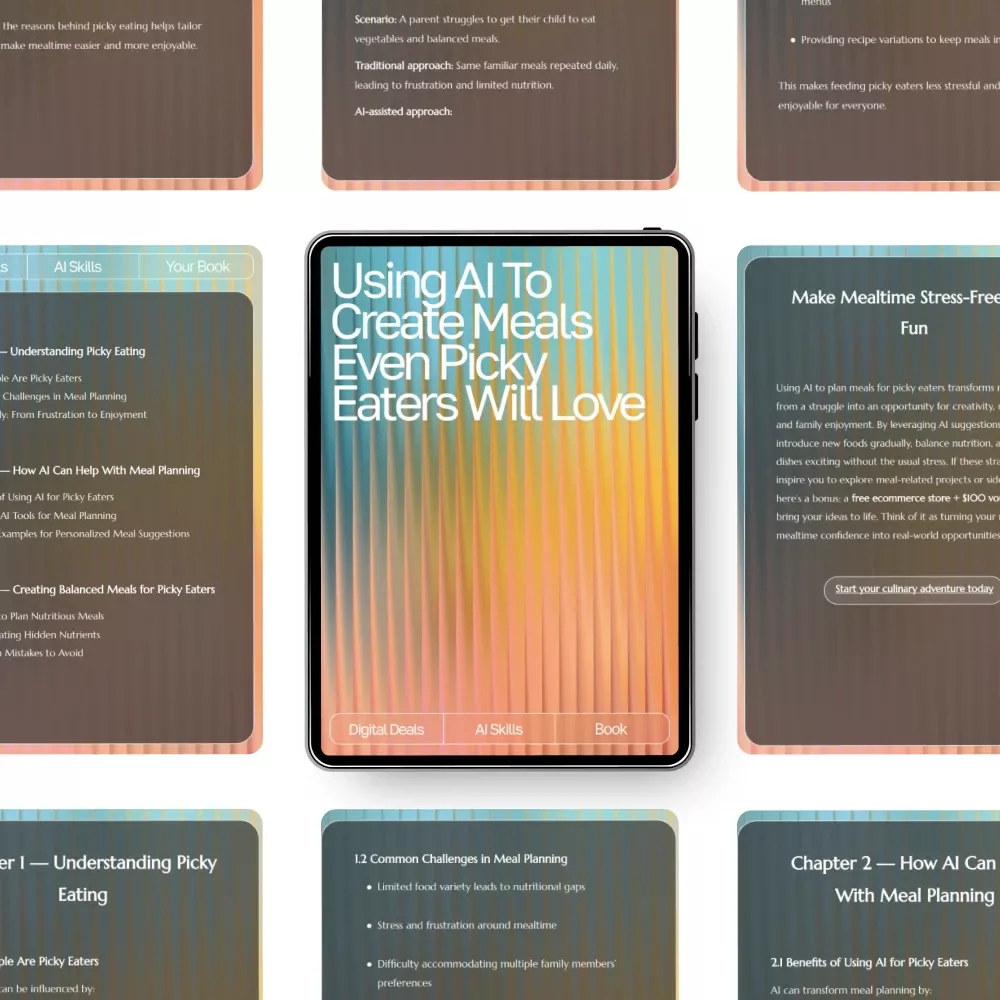 This isn’t just another generic recipe collection. Using AI to Create Meals Even Picky Eaters Will Love combines the latest AI technology with practical meal planning strategies specifically tailored for picky eaters. Unlike other resources, it teaches you how to leverage AI to personalize meal suggestions, track progress, and make mealtime enjoyable for everyone. Whether you’re a busy parent, a caregiver, or anyone looking for creative solutions, this guide gives you the tools to confidently plan meals that stick.