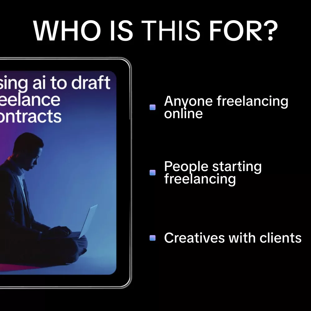 This guide is for freelancers, solopreneurs, and independent creatives who want a faster, clearer way to handle contracts. Unlike generic templates, it teaches you a repeatable system for ai to draft a freelance contract that fits your specific work and clients. You’re not just downloading a document—you’re learning a skill you can use again and again as your business grows.