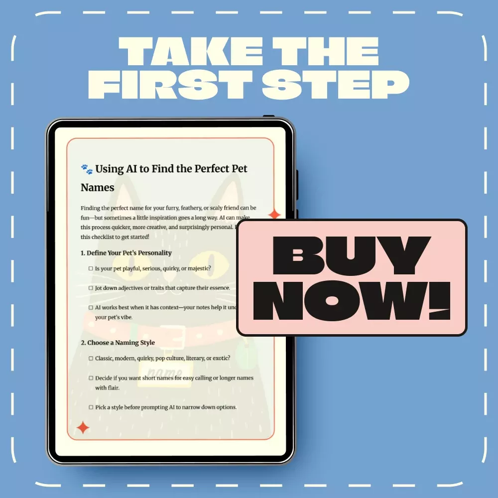 This digital checklist is perfect for pet lovers, new adopters, breeders, or anyone curious about using ai to find pet names in a creative way. If you’ve ever spent hours brainstorming pet names, this resource will save you time, inspire you, and make the process delightful.