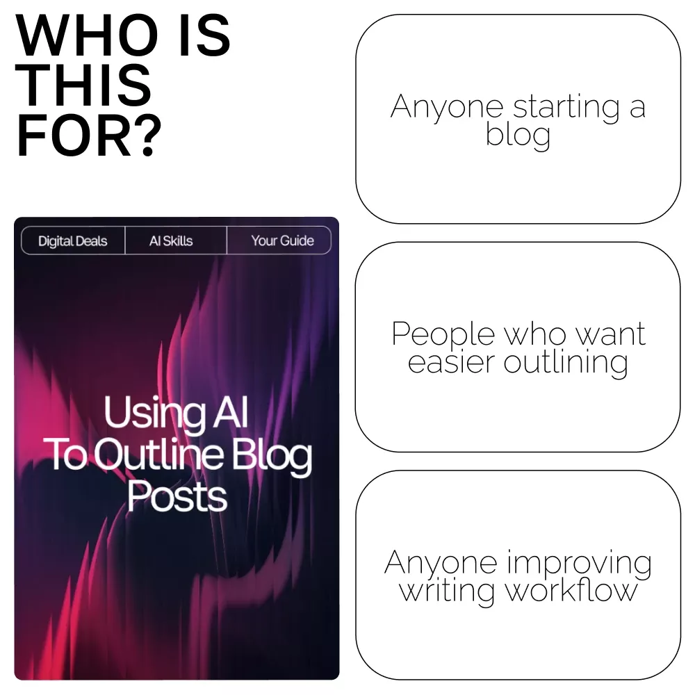This guide is perfect for bloggers, freelancers, entrepreneurs, and content creators who want a simple, reliable workflow for outlining blog posts with AI. If you’re ready to improve your writing speed, clarity, and organization—this resource was made for you.