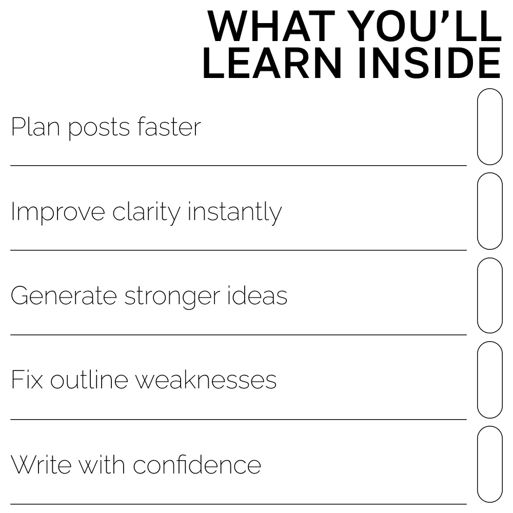 • Chapter 3: Perfecting Your Outline – Organize ideas, spot gaps, strengthen weak points, and follow a case study from AI draft to polished blog.