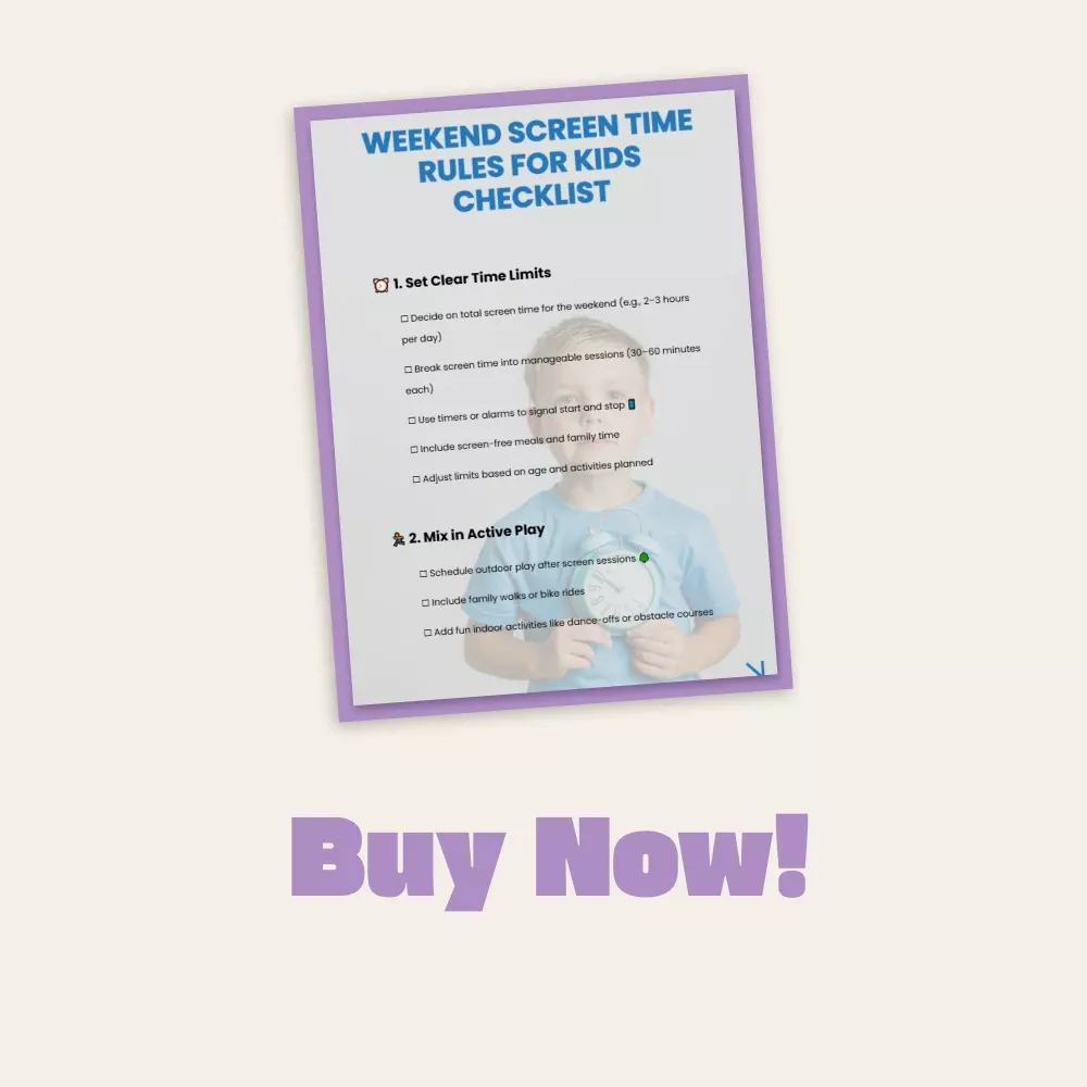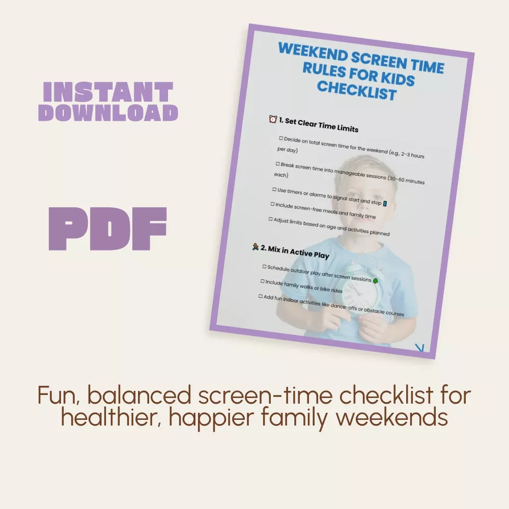 Download the Weekend Screen Time Rules for Kids Checklist now and start transforming your family’s weekends into balanced, engaging, and screen-smart adventures. Make screen time purposeful, and family time priceless!