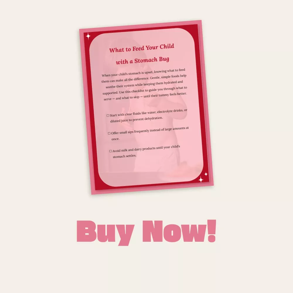 Download the What to Feed Your Child with a Stomach Bug checklist now and take the stress out of sick-day meals. With this printable resource at your fingertips, you’ll always know the right food choices to keep your child hydrated, nourished, and on the path to recovery — one gentle bite at a time.