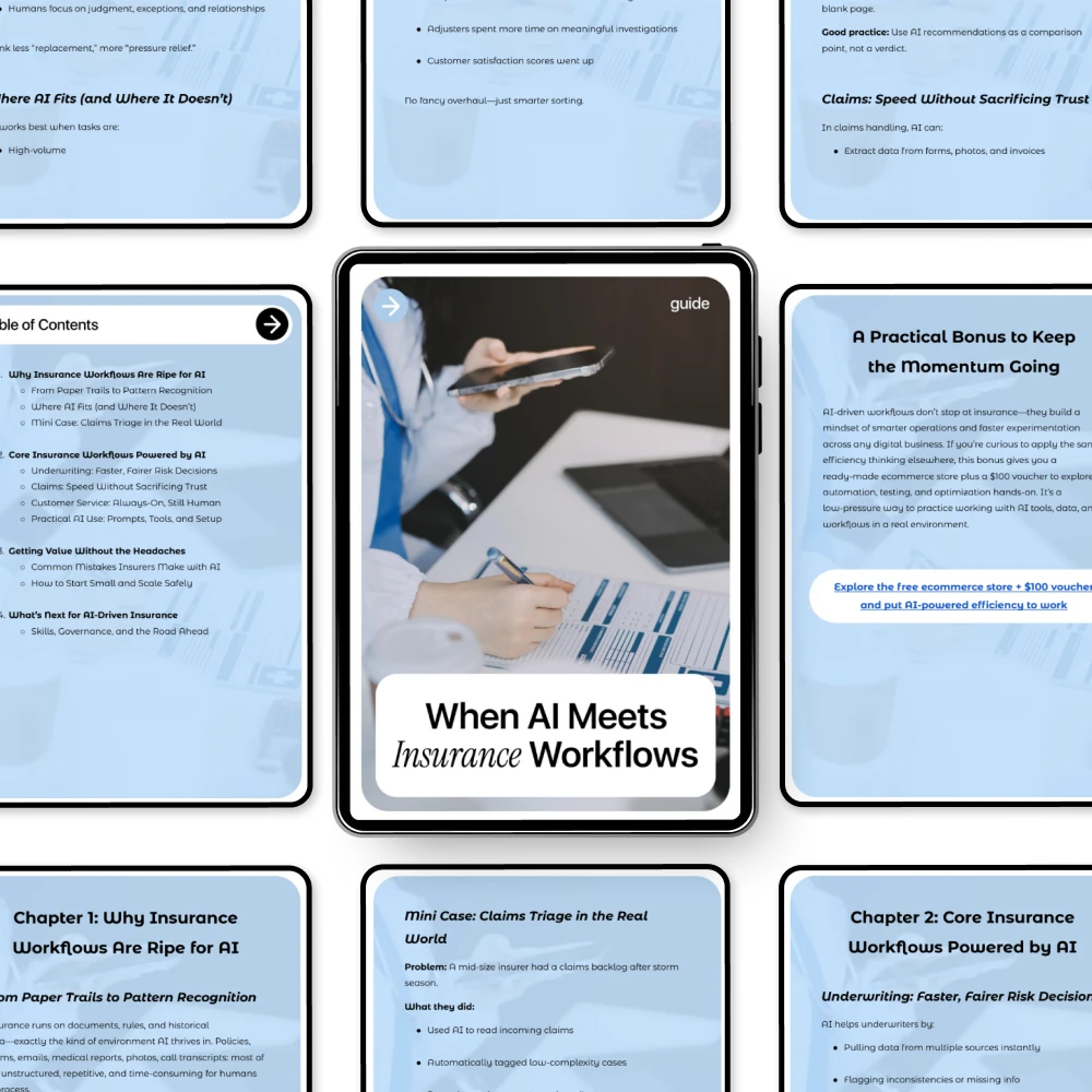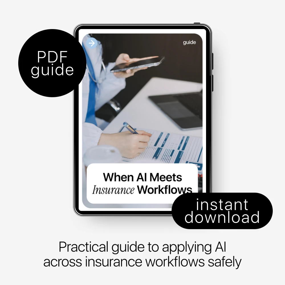 When AI Meets Insurance Workflows is a clear, practical guide designed to help insurance professionals understand where artificial intelligence truly adds value and where it doesn’t. Instead of hype or technical overload, this guide focuses on real-world applications, everyday workflows, and decisions that matter. If you’ve been hearing about ai in insurance workflows but aren’t sure how to apply it safely, effectively, and responsibly, this resource was created for you.