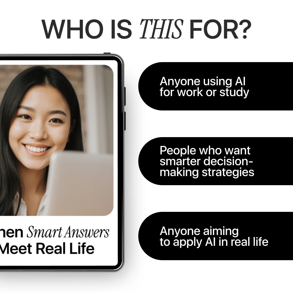 Whether you’re a professional using AI for planning, a student navigating AI-assisted learning, or a team looking to integrate AI responsibly, this guide is for you. If you want to stay critical, practical, and context-aware while leveraging AI, When Smart Answers Meet Real Life is your essential companion.