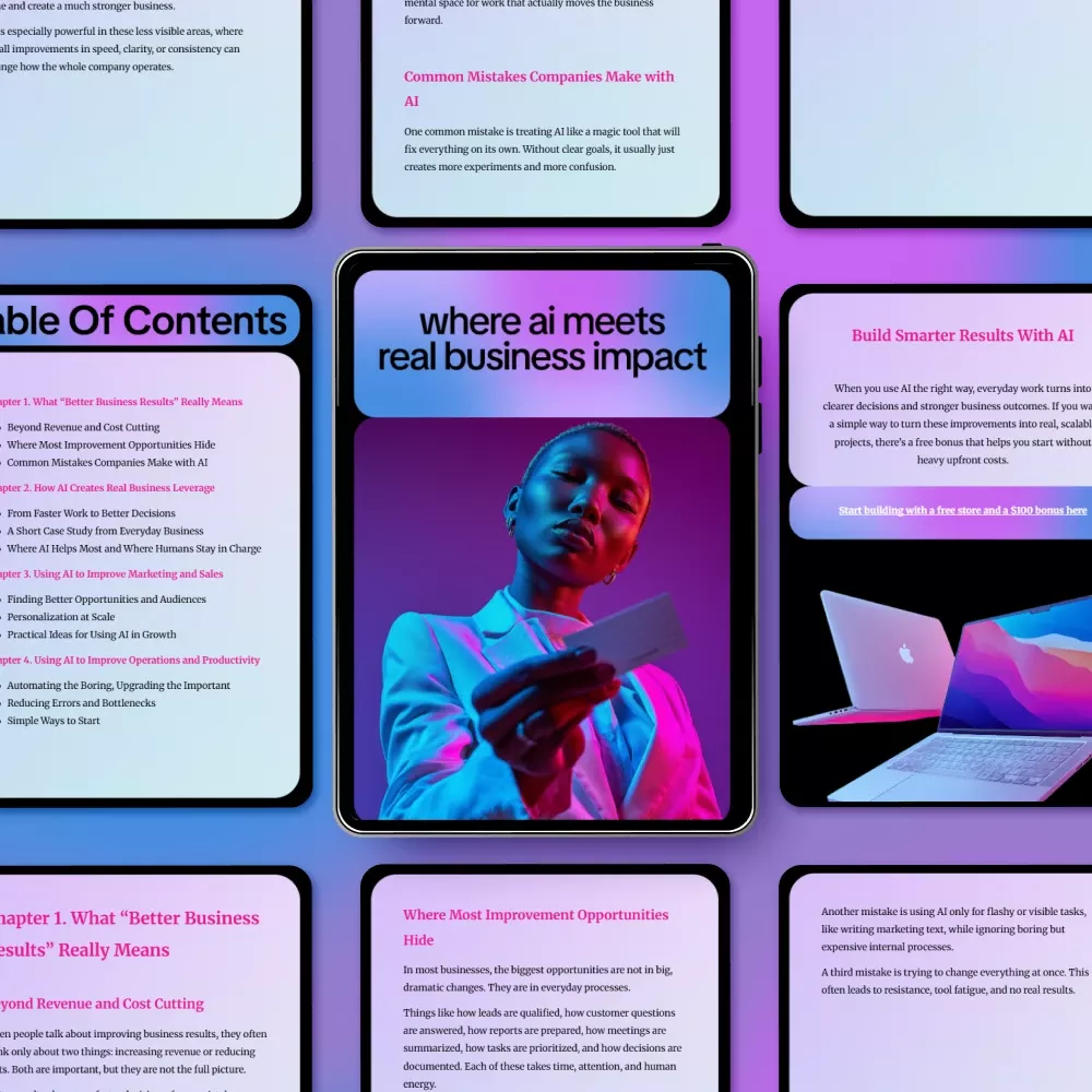 Most business owners and teams know AI is important, but far fewer understand how to turn it into meaningful outcomes. Where AI Meets Real Business Impact is a practical, plain-language ebook designed to close that gap. Instead of hype or technical jargon, this guide focuses on how ai improves business results in ways that actually matter: better decisions, smoother operations, stronger marketing, and happier customers.