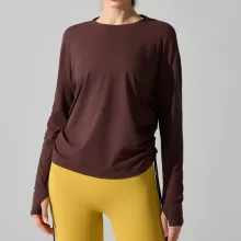 This piece caught my eye because of its square neck design. It's not something you see every day in workout gear, and I love how it adds a touch of chic to my gym outfit! The long sleeves are perfect for those early morning runs when the air is still cool, and the stretch fit ensures that they don't ride up or get in the way while I'm working out. And let me tell you about this fabric - it's lightweight yet sturdy, breathable but also quick-drying. Plus, it feels incredibly soft against my skin.
