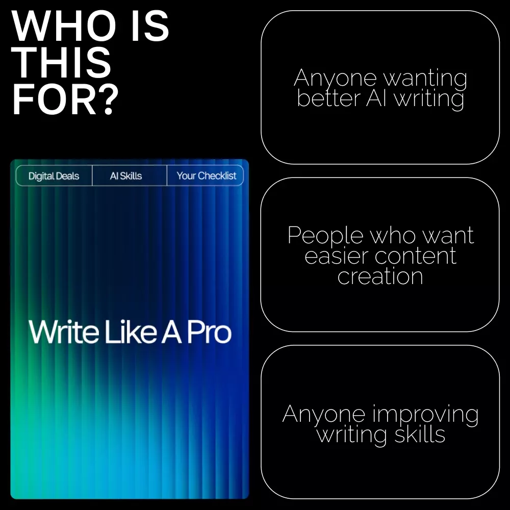Write Like a Pro doesn’t overwhelm you with jargon or walls of text. Instead, it gives you a streamlined, practical system you can use immediately. You get real examples, flexible formulas, and repeatable steps that help you understand how to work with AI—not just what to type. Whether you’re writing fiction, ads, lessons, or product descriptions, you’ll always know how to craft the perfect prompt.
