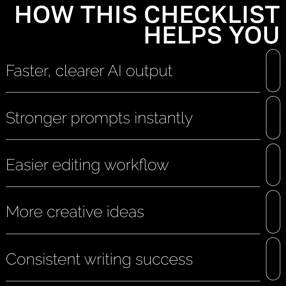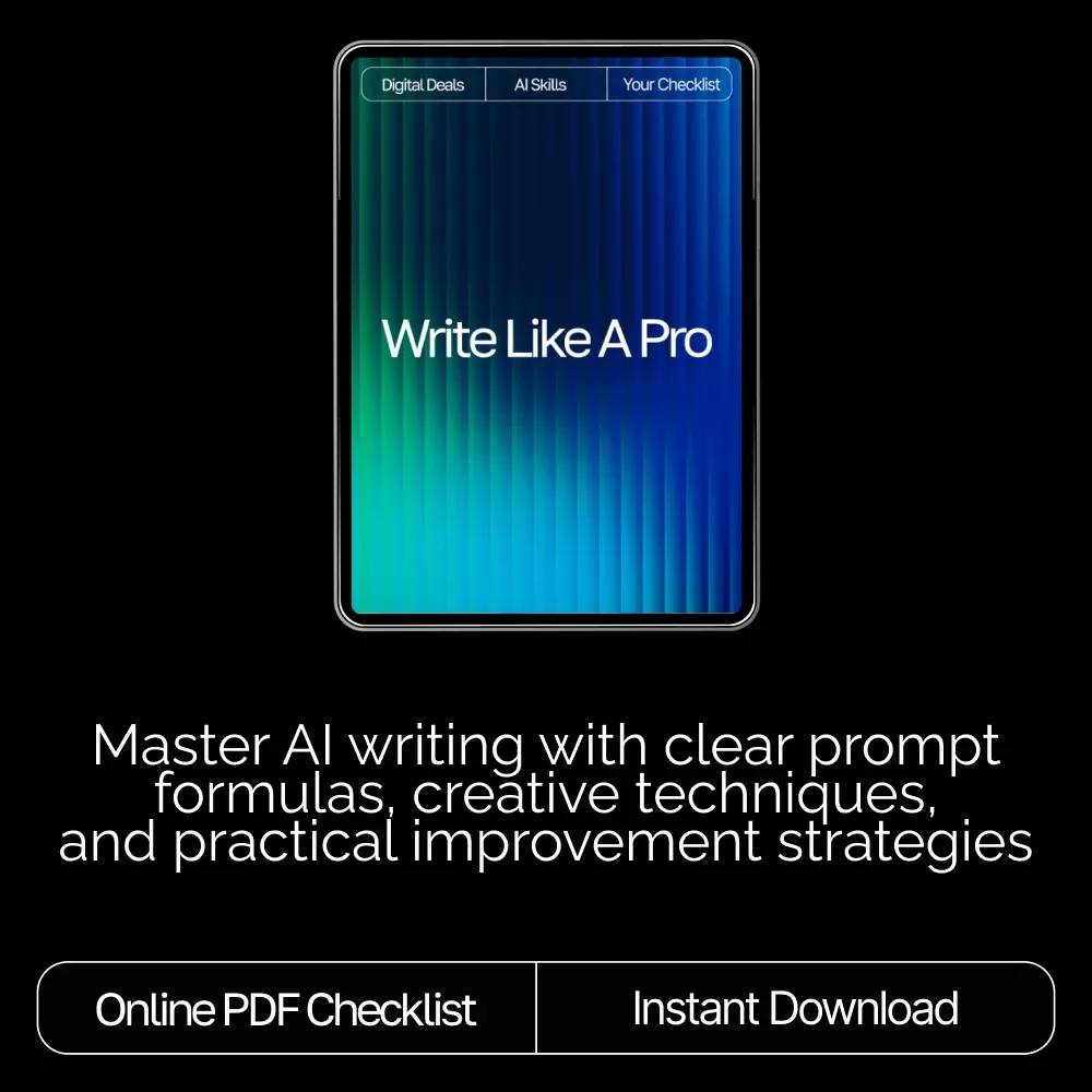 Unlock your full creative potential with Write Like a Pro, the ultimate checklist designed to help you master the best prompt formulas for ai writing. Whether you’re crafting stories, marketing copy, blog posts, or digital products, this easy-to-use guide shows you exactly how to communicate with AI so you get powerful, polished results every time. Perfect for beginners and experienced creators alike, this digital download takes the guesswork out of prompting and turns AI into your most reliable writing partner.