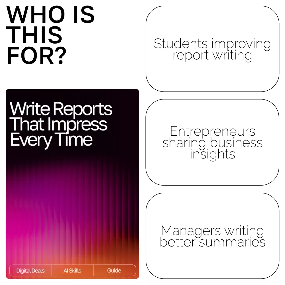 This guide is made for professionals, students, freelancers, and creators who want to produce clear, impressive reports with less effort. If you use AI tools for writing or research, this is your step-by-step manual for achieving depth and precision in every report.