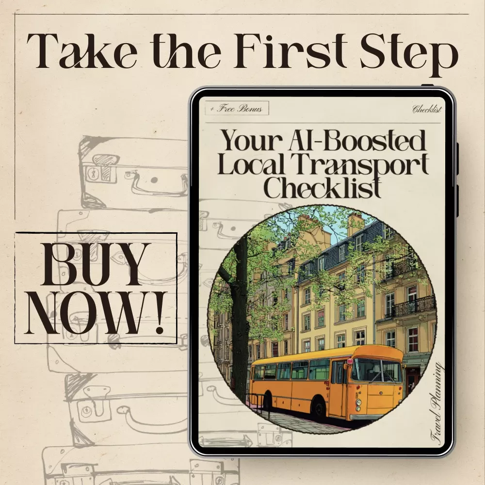 Stay one step ahead while exploring any city with Your AI-Boosted Local Transport Checklist — a practical, digital guide that teaches you how to use ai for local transportation safety tips. Whether you’re navigating public transit, booking rideshares, or walking through new neighborhoods, this checklist helps you plan routes confidently, choose trusted transport options, and protect your personal safety on the move. It’s a must-have tool for travelers, commuters, and adventurers who want to move through unfamiliar places with calm, clarity, and tech-powered confidence.