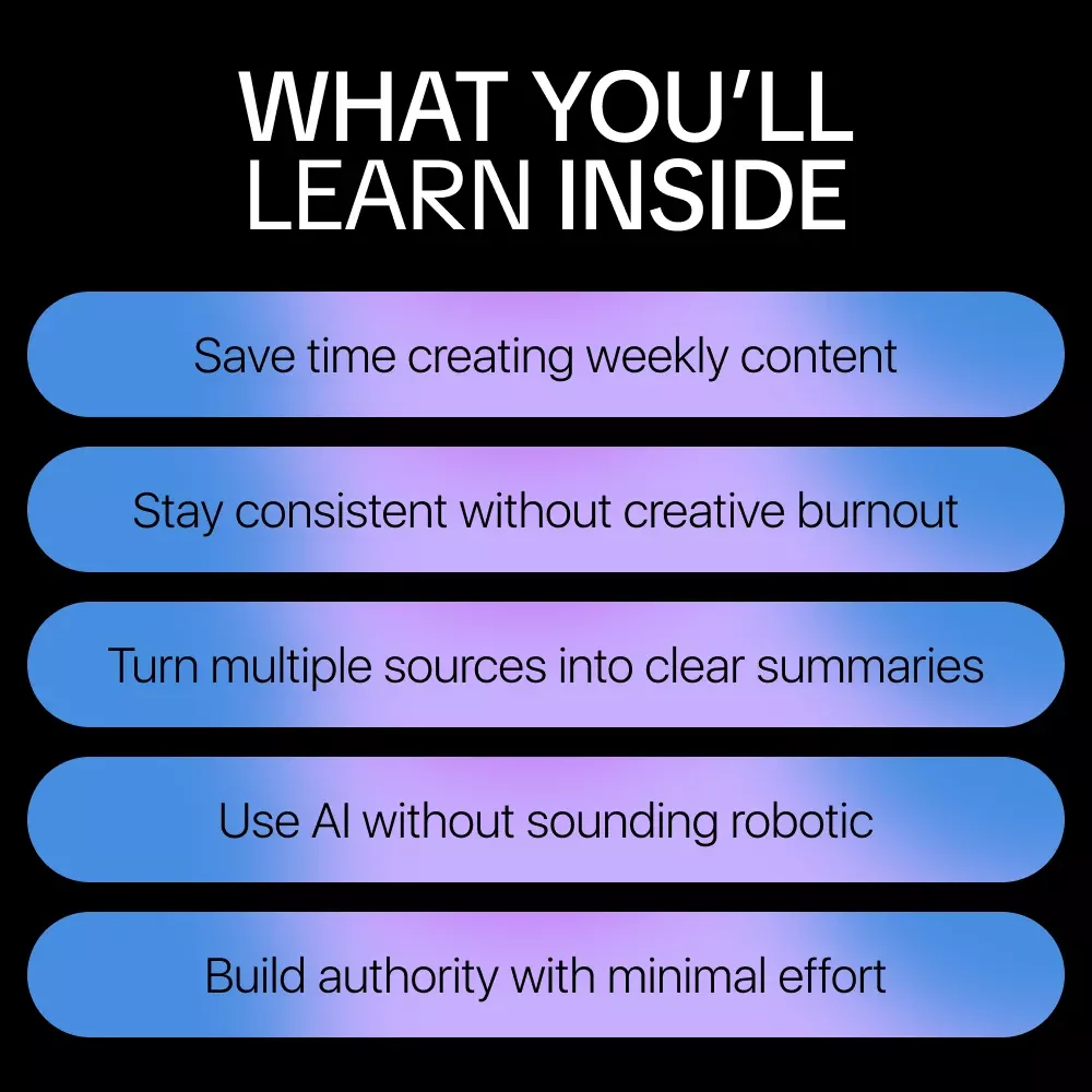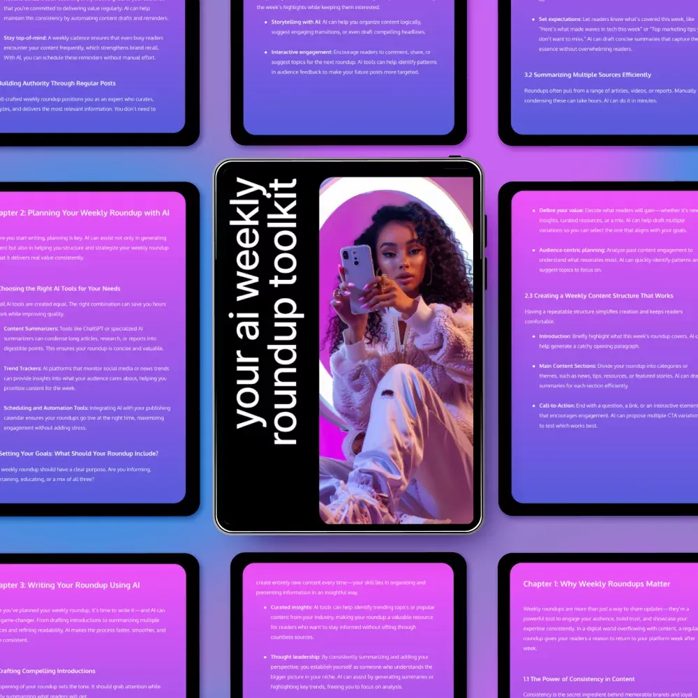 Unlike generic AI writing guides, this resource is focused specifically on weekly roundups. It blends strategy, structure, and hands-on AI usage, so you’re not left guessing how to apply what you learn. The examples and prompts are practical, adaptable, and designed for real publishing schedules—not theory.