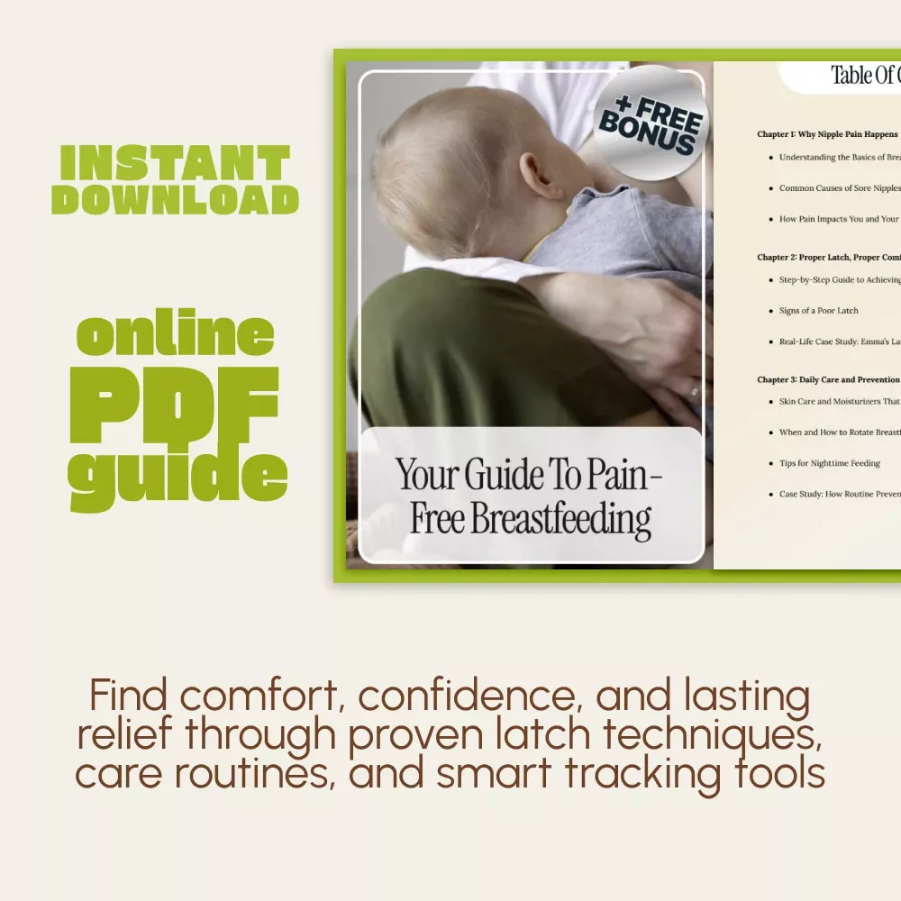 Breastfeeding should be a bonding, beautiful experience—not a painful one. Your Guide to Pain-Free Breastfeeding is the essential digital eBook designed for new and expecting moms who want to learn how to prevent nipple pain while breastfeeding. With step-by-step guidance, real-life case studies, and expert-backed insights, this downloadable guide helps you build confidence, reduce discomfort, and make feeding time calm and enjoyable for both you and your baby.